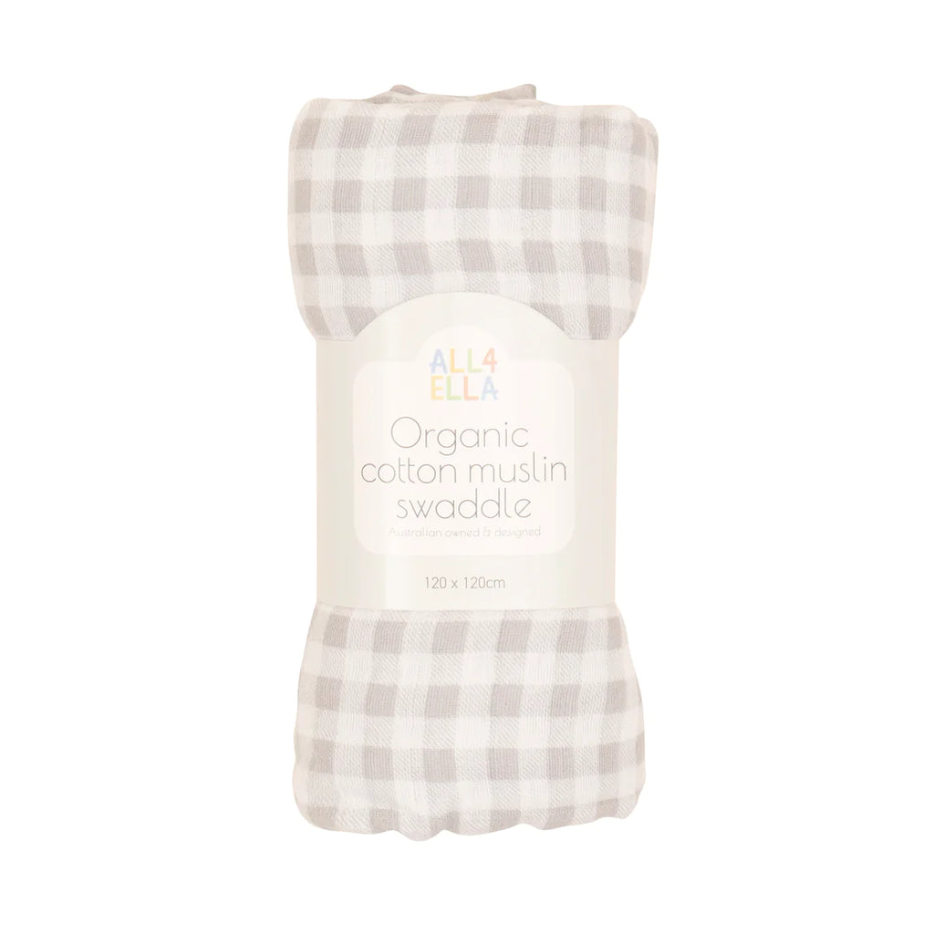 Muslin Swaddle - Gingham Grey - All 4 Ella