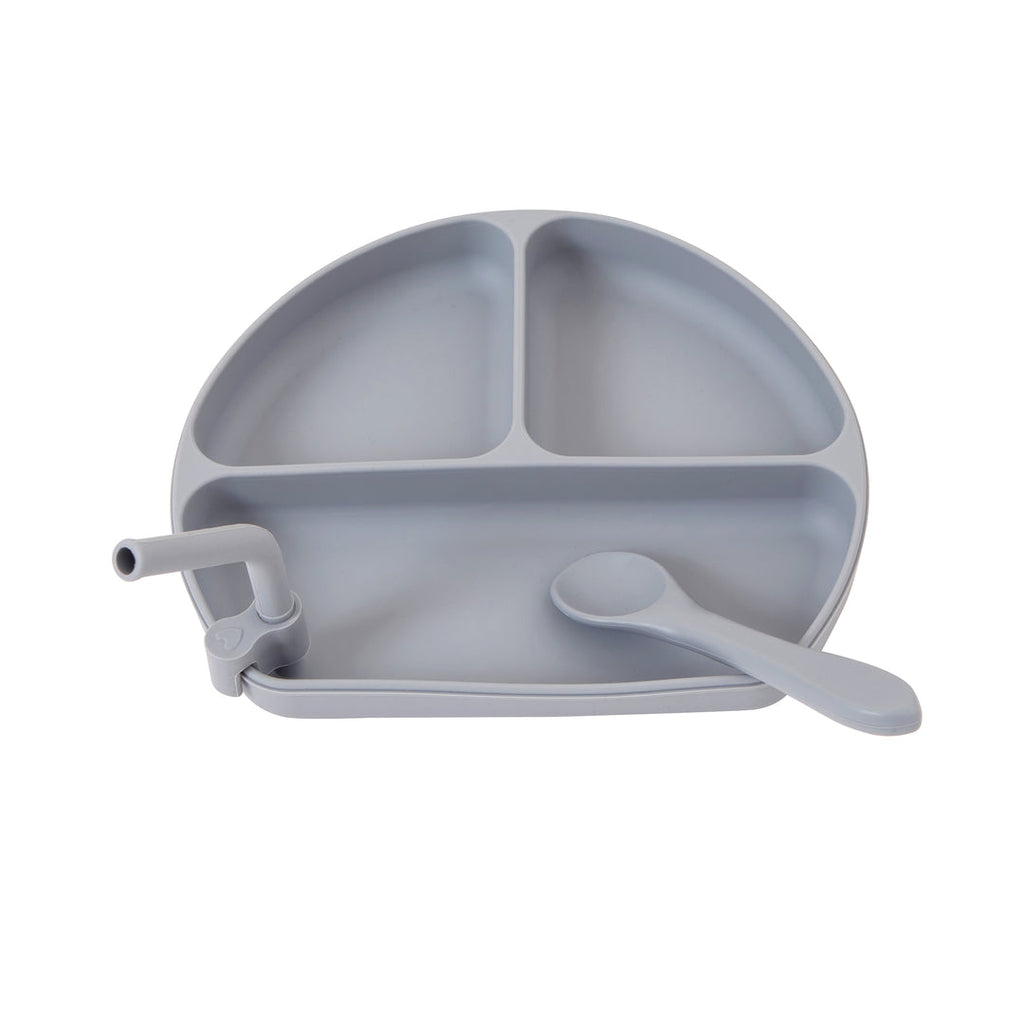 Silicone Plate with Straw & Spoon - Dusty Pink