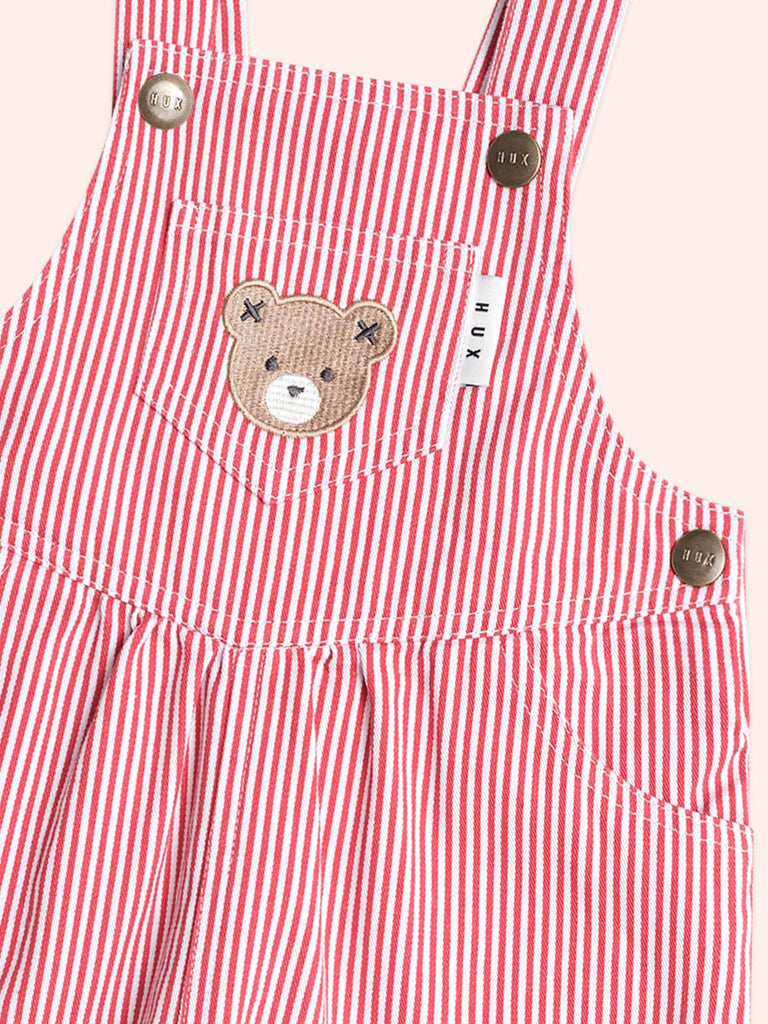 Chilli Red Stripe Short Overalls - Huxbaby