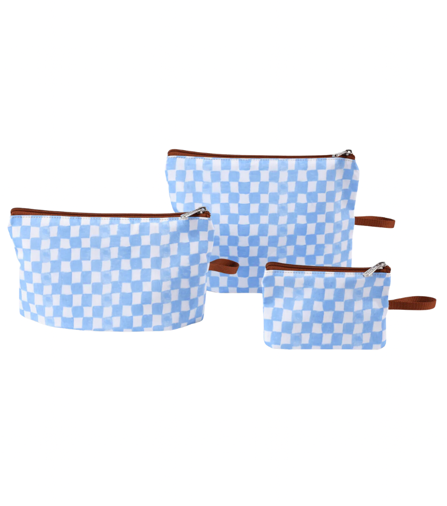 Reversible Pram Harness Cover Set - Blue Check/Mediterranean