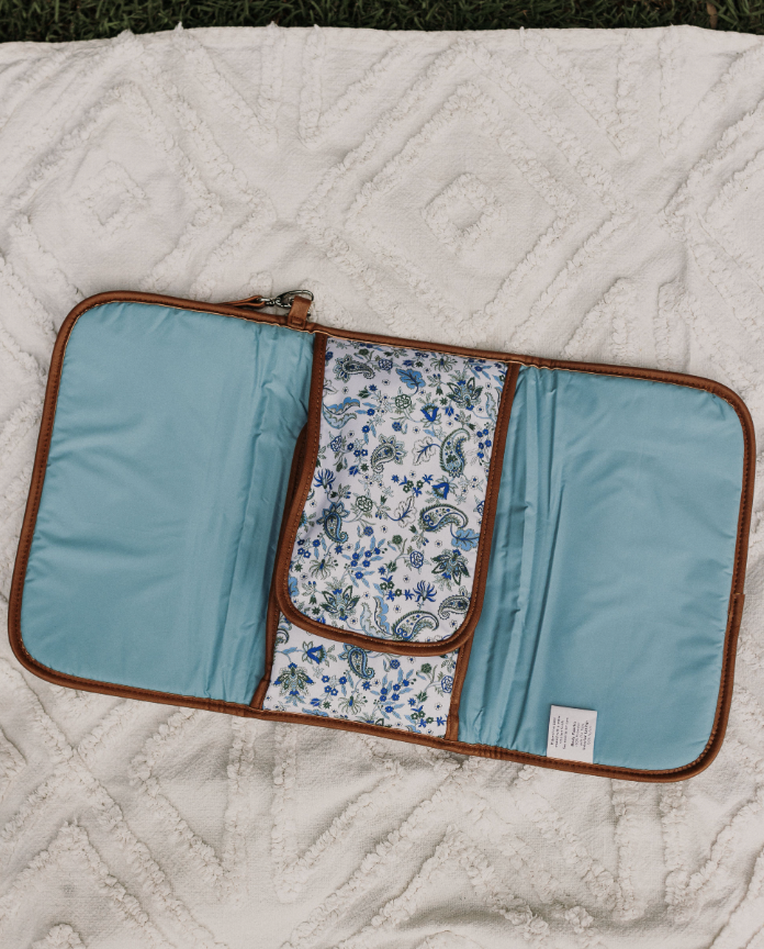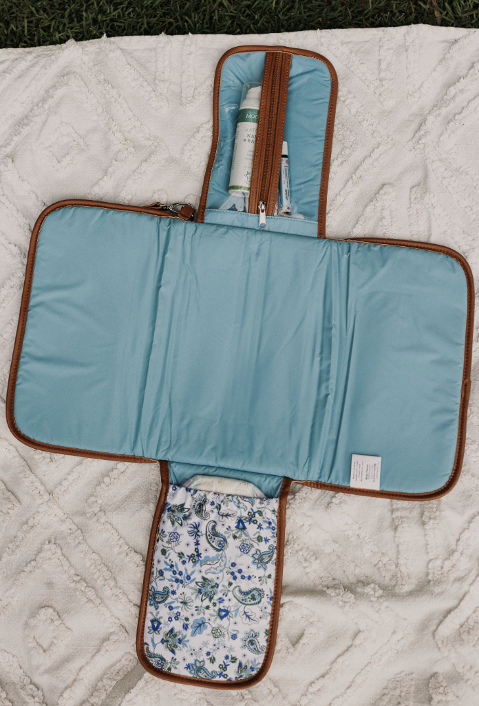 Available in OiOi's stunning Paisley print, this compact clutch unfolds to reveal an extra-padded change mat, an elasticised storage pocket for nappies and a clear compartment for your wipes & creams. On the back of the clutch, is an easy-access zip pocket for any extras you need on the go (such as phone & keys).