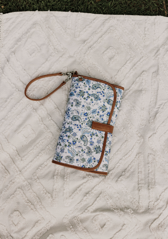 Combining function with beauty, this stylish clutch comes with a detachable wrist strap that can also be used to hang the mat neatly from your pram.