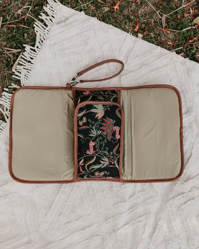 Available in OiOi's stunning Jungle Print, this compact clutch unfolds to reveal an extra-padded change mat, an elasticised storage pocket for nappies and a clear compartment for your wipes & creams. On the back of the clutch, is an easy-access zip pocket for any extras you need on the go (such as phone & keys).