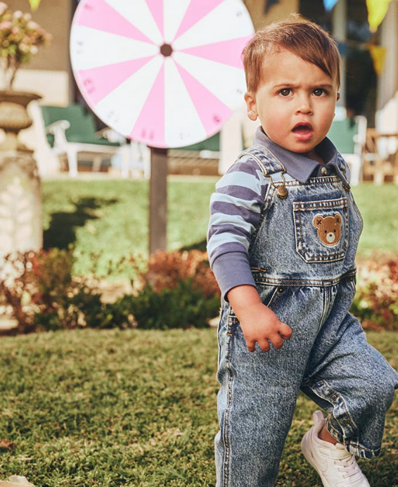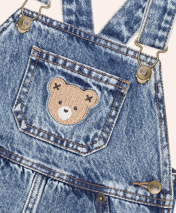 - Vintage style denim overalls embroidered with our signature Huxbear logo