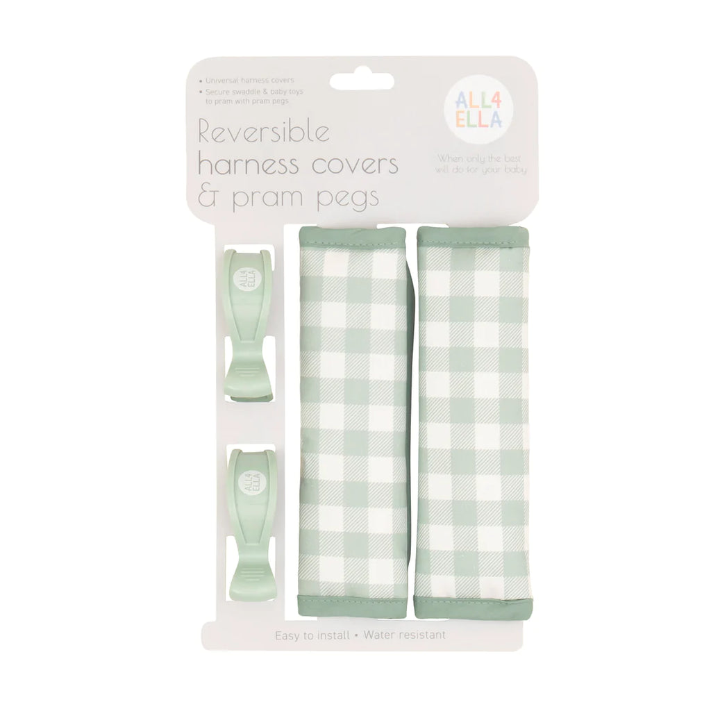 Harness Covers & Pram Pegs - Gingham Sage - All 4 Ella