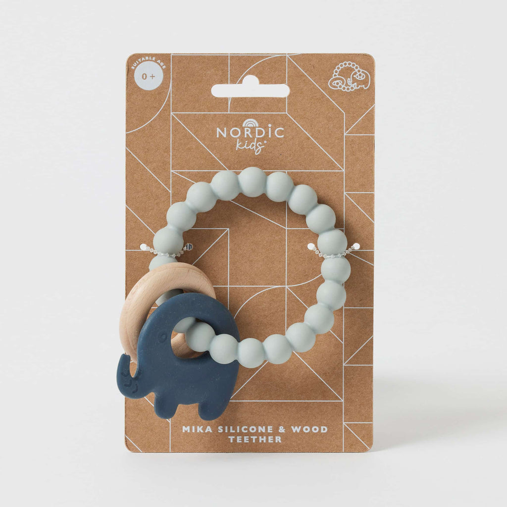 Mika Silicone & Wood Teether - Steele - Nordic Kids