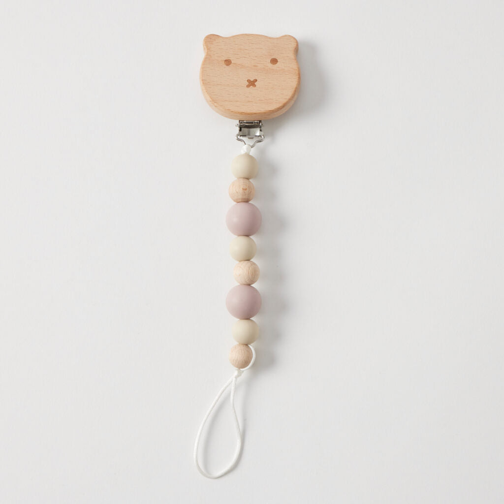 Keep your little one’s dummy from falling on the floor or getting lost with the Ollie Silicone & Wood Dummy Clip. Featuring an adorable bear design, this dummy clip can also double as a teether. Just fasten the clip to a little one’s pram, car seat or clothes to keep the dummy clean.