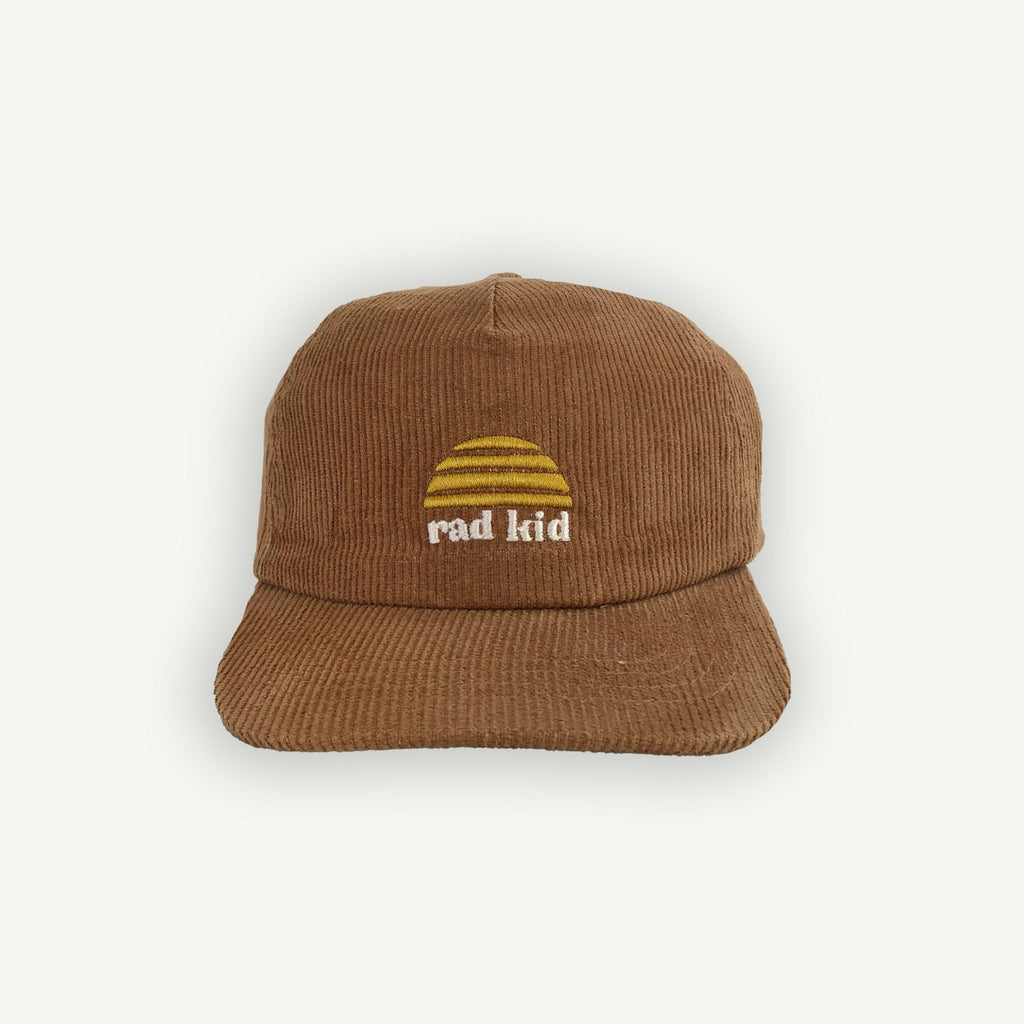 Our classic Sun logo embroidered onto a velvety Mauve cord. The perfect cap for your rad kid.