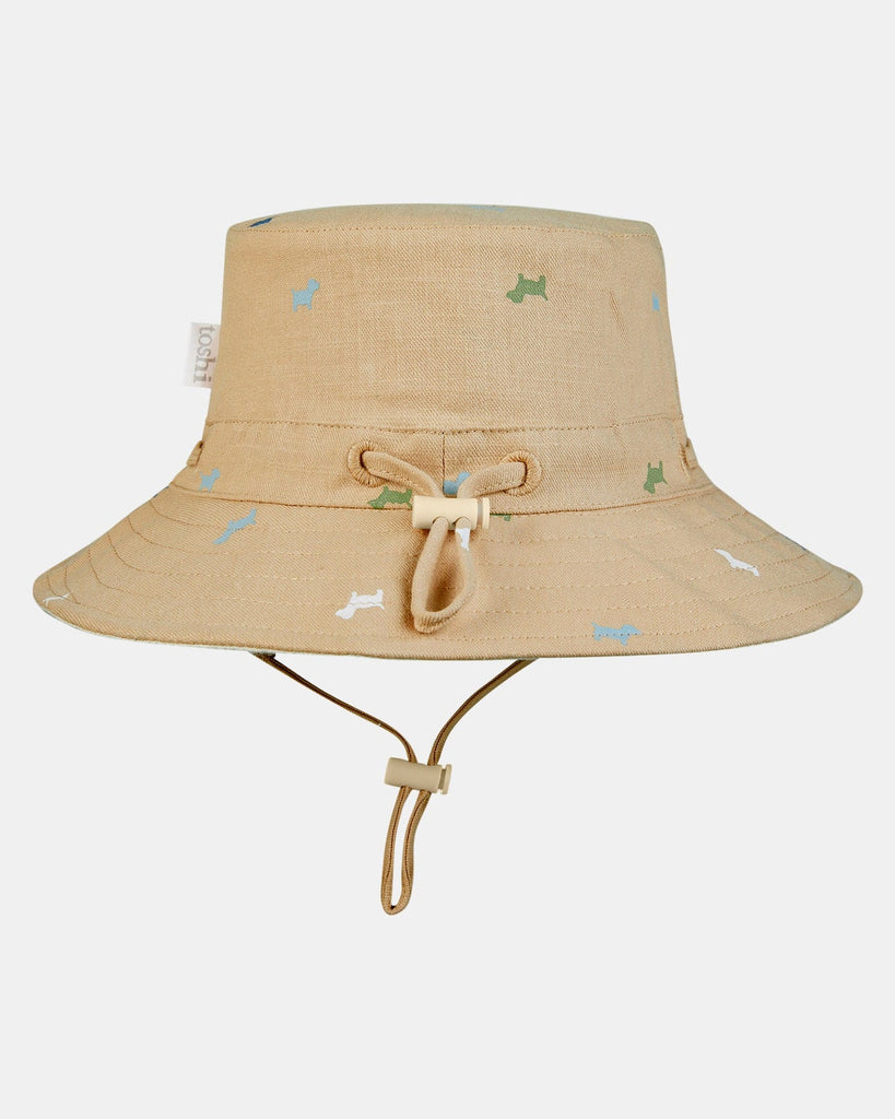 Toshi presents the classic Sunhat Nomad, ideal for children of all ages. Our sunhat has a broad and well-structured brim. Rated UPF 50+, this Toshi Sunhat offers maximised sun protection. A head tie creates adjustable sizing and the chin tie with toggle secures the hat for ease of wear. The security release clasp on the chin tie is designed to enhance wearer safety. The classic Toshi Sunhat is crafted from a quality and durable 100% cotton and is fully lined for additional comfort.