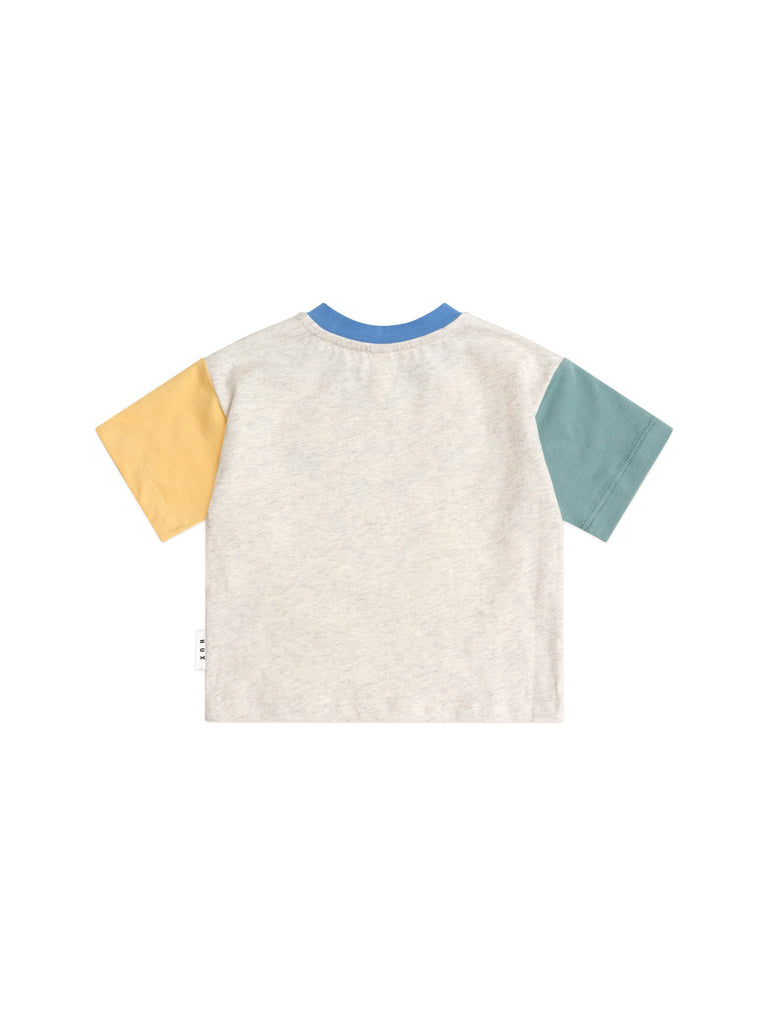 The perfect everyday tee, but with a sporty twist. This boxy t-shirt is made from buttery-soft organic cotton in an off white Marle and features a tennis bear embroidered on the tummy. Baby sizes feature stainless steel shoulder snaps for quick changes.