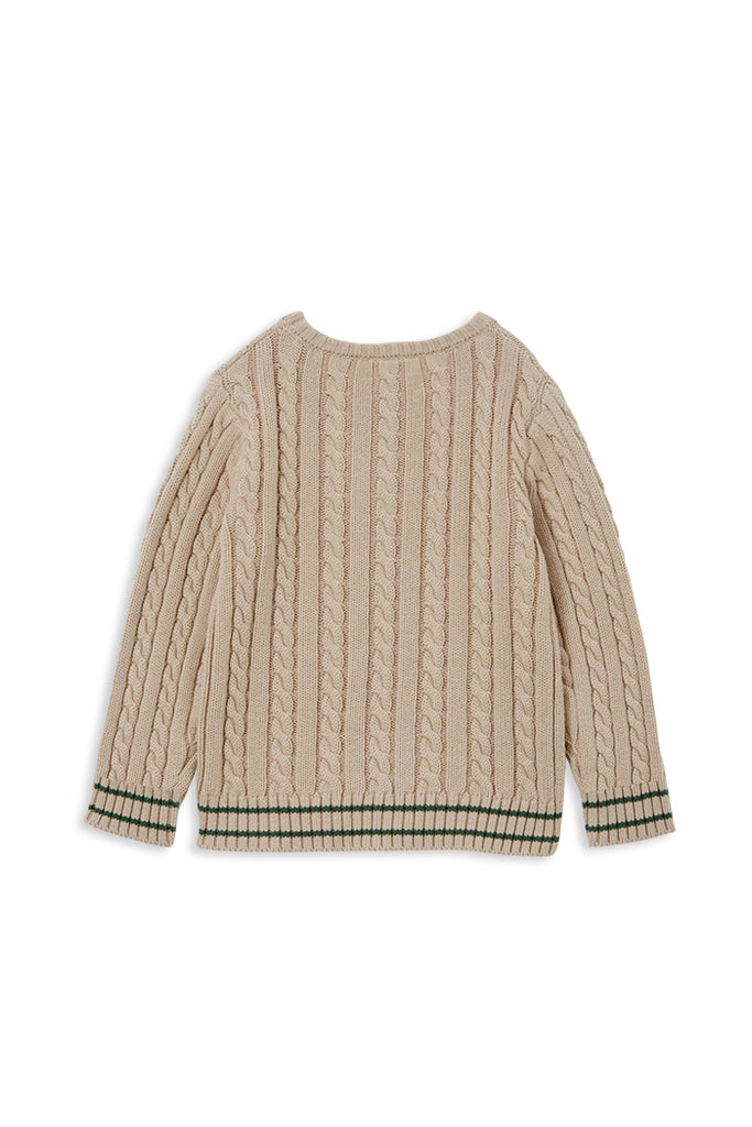 Cable Knit Jumper with green tipping around sleeves and hemline.
