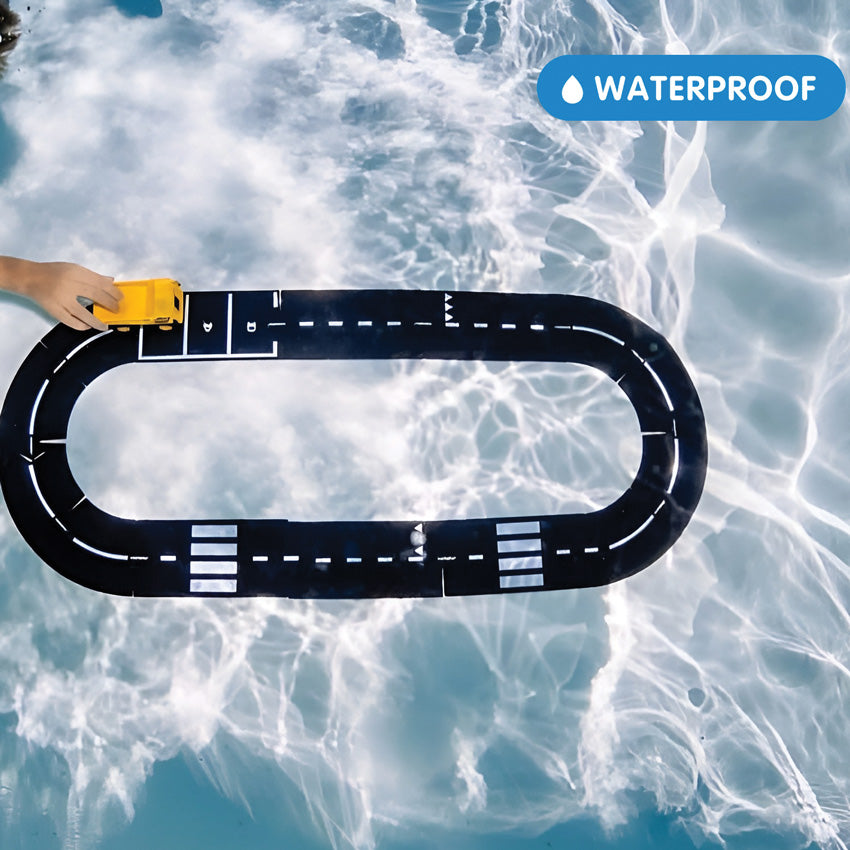 Expressway is great for encouraging and stimulating imaginative open ended play. Watch your child create their own circuits and road maps for their favourite toys and vehicles. Fantastic for practising fine motor skills, it easily connects and can be extended with other sets in the Waytoplay collection. A flexible, tactile and durable road track system that can be used on almost any surface inside or out and combine with other toys. Easy wipe clean. Set includes 8 curves, 6 straights, 1 intersection and 1 roundabout that are printed on both sides of the tracks. Road width 11cm.